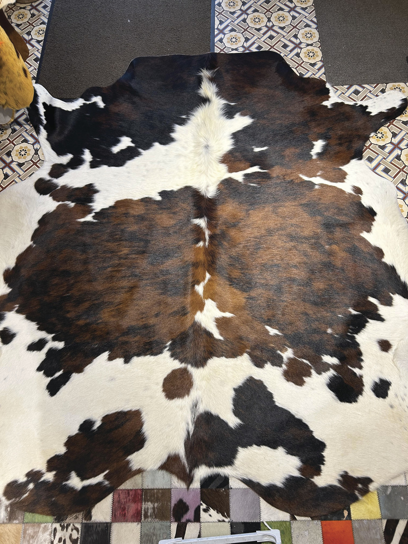 Toutes les peaux sont différentes car la vache est plus ou moins tachetées ce qui fait un tapis unique !