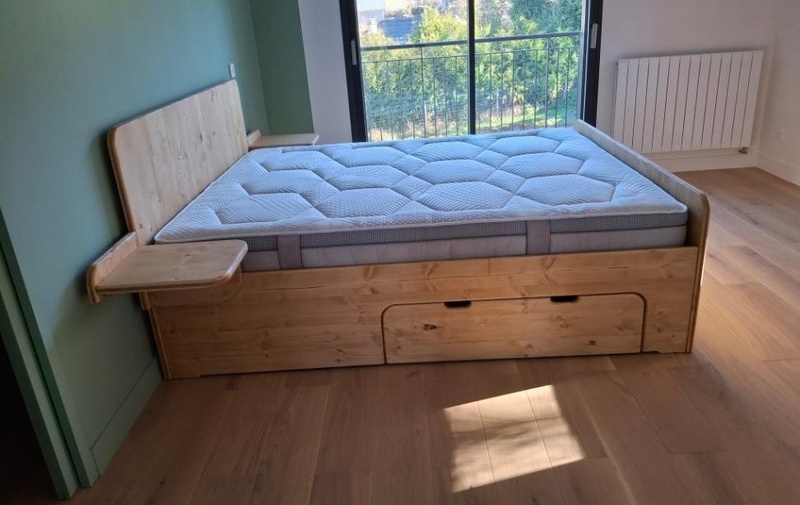Bois de lit en 160x200 avec 1 tiroir intégré